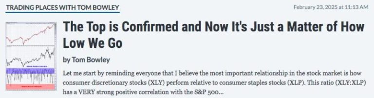 This manipulation applies to an even greater extent to individual stocks. One of my favorite stocks has been ridiculously-manipulated in 2025. Over the past four trading days, while the S&P 500 has been under pressure, this stock has gapped down 3.13, but has moved 8 bucks higher during the trading day. It’s one of our 12 individual stocks that we track each week and showed the most manipulation last week. Its AD line is soaring again and its relative strength vs. its industry peers has exploded higher since the first week of March. Owning stocks like this help us significantly outperform the S&P 500.